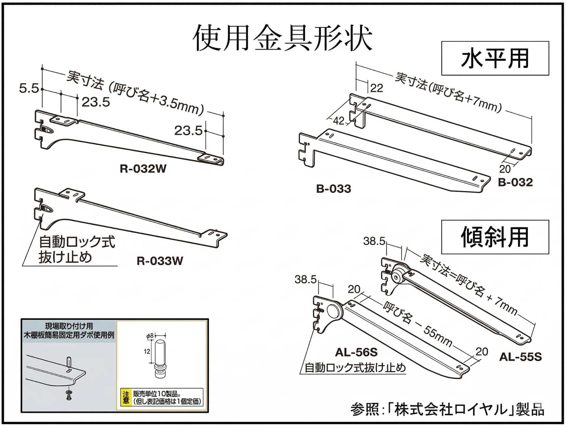 | ウッドブラケットダボ10個セット | 10個 | 605 | 税込 |